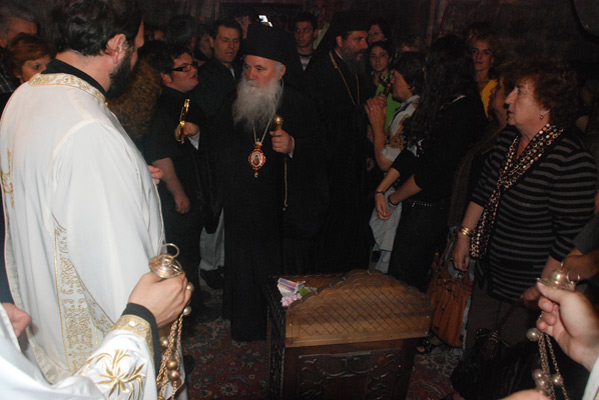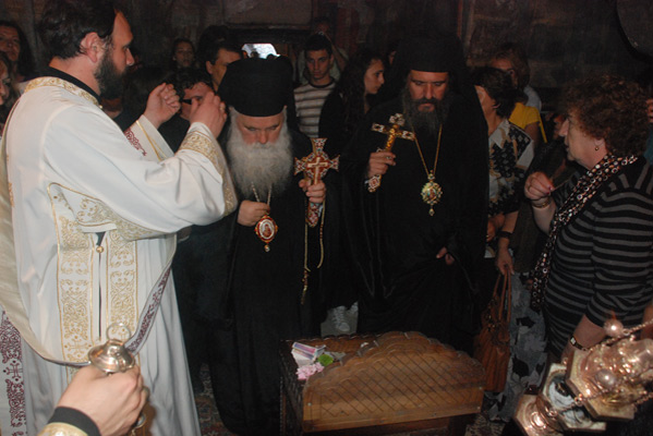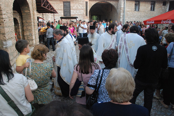 Празникот посветен на преподобниот Наум Охридски Чудотворец, во Дебарско-кичевска епархија торжествено со празнични богослужби беше прославен во неговиот манастир кој се наоѓа на јужниот брег на Охридското Езеро. Вечерта, на 02.07.2009 г., со почеток во 19 часот започна празничната Вечерна богослужба со која чиноначалствуваше Неговото Високопреосвештенство Митрополит повардарски г. Агатангел во сослужение на: архимандрит Нектариј, игумен на манастирот, архимандрит Партениј, игумен на манастирот „Свети Јован- Бигорски“, како и повеќемина други свештенослужители од епархијата. По завршувањето на богослужбата Митрополит Агатангел со боговдахновено слово се обрати кон верниот народ. Како и претходните години, така и оваа година илјадници верници дојдоа да се поклонат и помолат на гробот на великиот Чудотворец. Утредента, со почеток во 7:30 часот свештенослужителите ја започнаа празничната Утрена богослужба, а во 9 часот започна божествената архиерејска Литургија со која чиноначалствуваше Митрополитот Дебарско-кичевски г. Тимотеј во сослужение на Митрополит Повардарски г. Агатангел, архимандрит Нектариј, архимандрит Партениј, протојереј-ставрофор Ефтим Бетински, протојереј Тоди Јован (Албанска Православна Црква), свештеник Зоран Данев, јеромонах Доситеј како и ѓаконите Димче Азески, Николче Ѓурѓиноски и Васко Голабоски. Верниот народ кој со пост и молитва се подготвувал пристапи кон светиот Путир причестувајќи се со Крвта и Телото на нашиот Спасител Господ Исус Христос. По завршувањето на божествена Литургија, Архиереите заедно со свештенослужителите излегоа во дворот на манастирот каде што извршија мал Водосвет, ги благословија и прекршија празничните лебови и го осветија мозаикот на светиот Наум. Кон верниот народ Митрополит Тимотеј се обрати со празнично слово кое интегрално ви го пренесуваме.